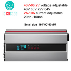 10A 40V - 88.2V Voltage Adjustable 48V 58.4V 72V 60V 67.2V 84V Lithium Ion Lifepo4 LiPo Battery Charger Fast Charge 5A 16S 20S